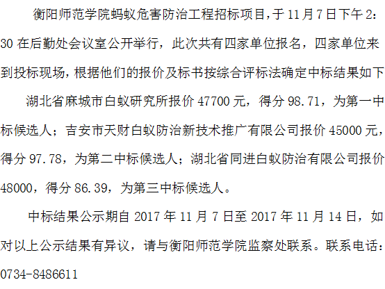 BB贝博平台登录app下载蚂蚁危害防治工程招标中标结果公示