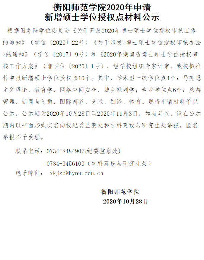 BB贝博平台登录app下载2020年申请新增硕士学位授权点材料公示